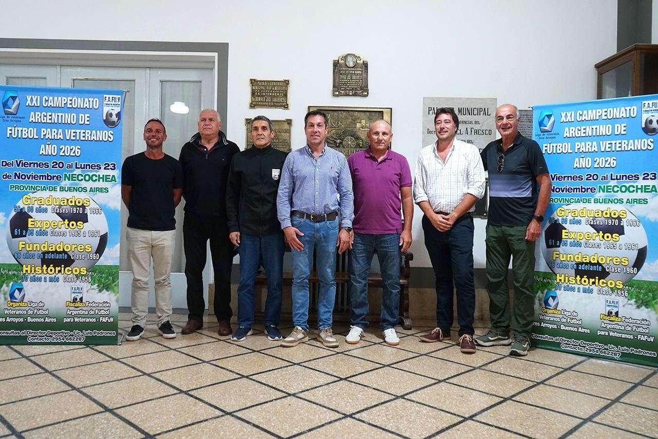 El intendente municipal, Arturo Rojas, recibió a las autoridades de la Federación Argentina de Fútbol para Veteranos (FAFUV), que por primera vez organizará su torneo nacional con más de 1500 jugadores en Necochea. La cita será el fin de semana largo del viernes 20 al lunes 23 de noviembre, y más allá de lo deportivo significará una gran movida para el sector turístico.